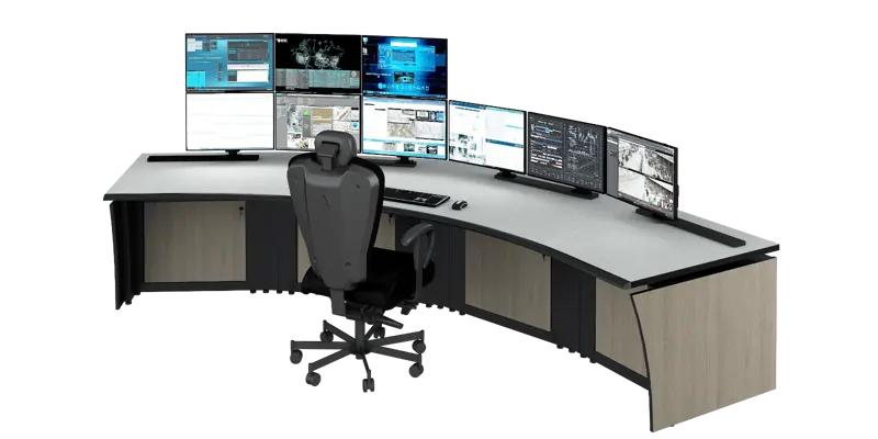 The Vue Workstation transforms control room operations with configurable, connectable, adjustable design that adapts to any environment. Built for 24/7 continuous use Vue delivers complete operator comfort through horizontal/vertical monitor adjustability, Versa-Trak mounting systems, and static or sit/stand configurations. From open architectural designs to closed base options with premium surface materials, Vue workstations scale from single-operator setups to multi-operator command centers where focus and mission success are non-negotiable.