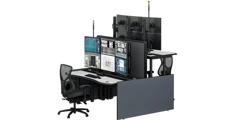 The Vue Console is a high-performance, modern operator workstation designed for mission-critical environments such as command centers, security operations, and emergency response rooms. Available in a variety of sizes and configurations, it offers ergonomic design, modular flexibility, and durable construction to support continuous operations.