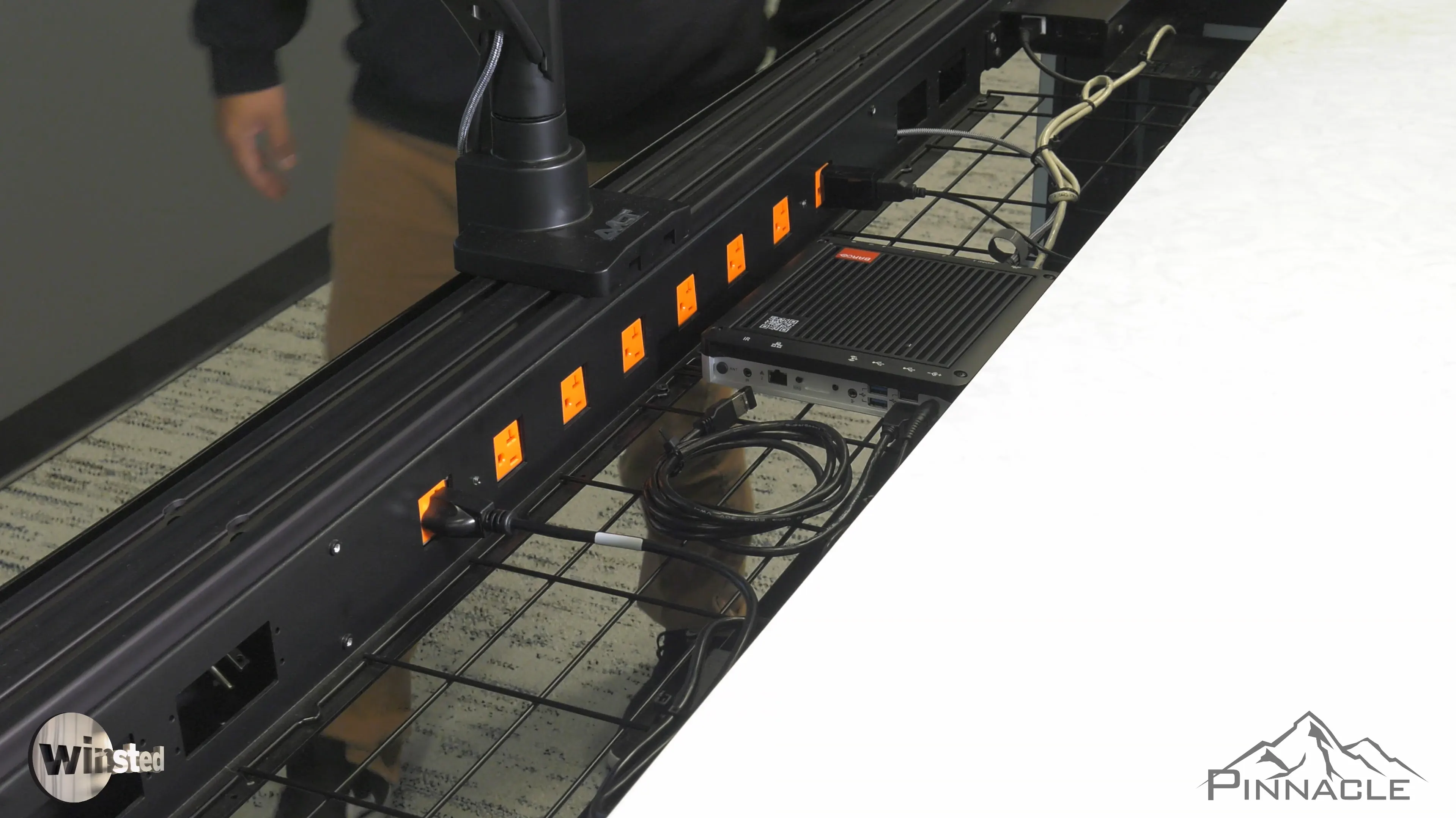 Slide forward Pinnacle’s unique sliding worksurface and you’ll discover the game changing Technology Tray. This hidden gem is an expansive cable management tray large enough to hold small electronics and Micro PCs. It features integrated AC power and a wide range of AV and Network connectivity, such as fiber optic and ethernet patches, USB connections, video connections, audio patch connections, and integrated USB-C power boasting 45 watts per junction – all of which are fully custom configured.