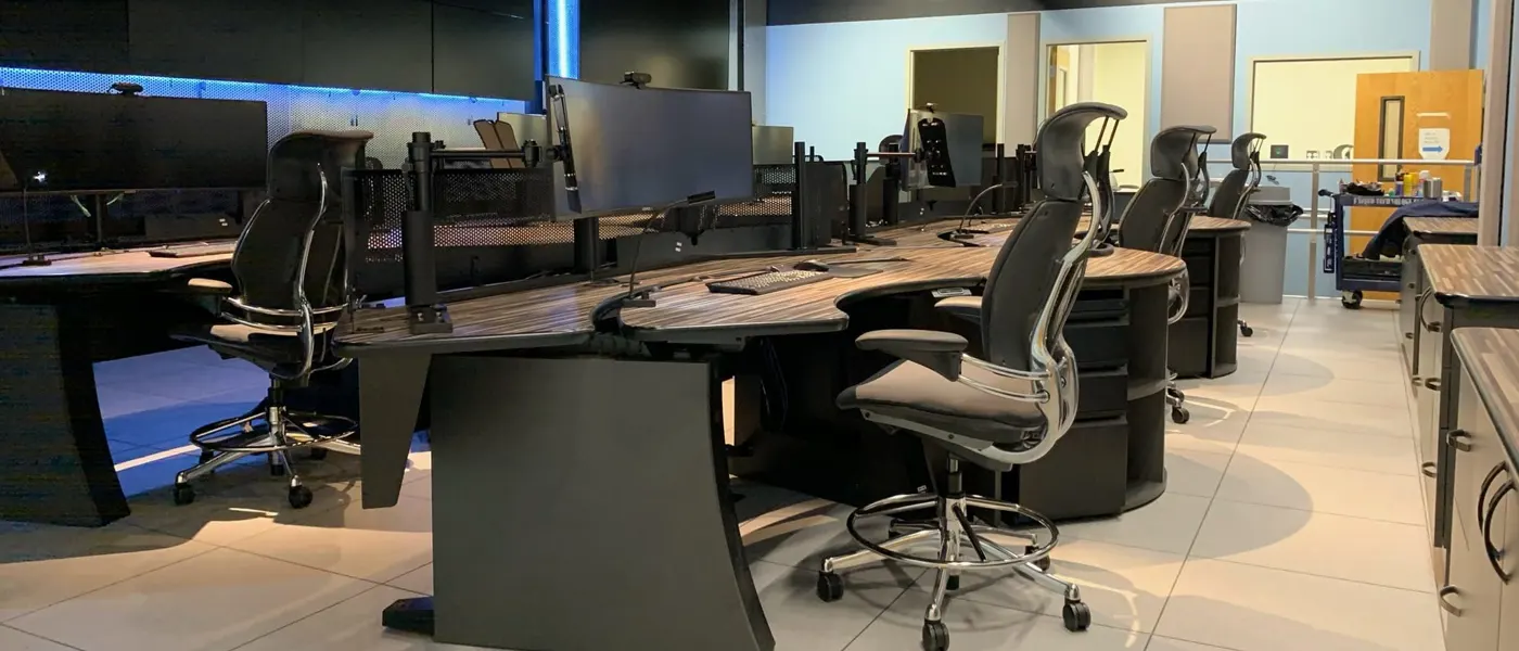 During the design phase, Winsted's engineers prioritized sightline optimization, ensuring that raised desks would not obstruct critical views when operators chose to stand. The workstations incorporated Winsted's Versa-Trak monitor mounting system for flexible display configuration and comprehensive cable management systems to maintain the clean, professional appearance required in military facilities.