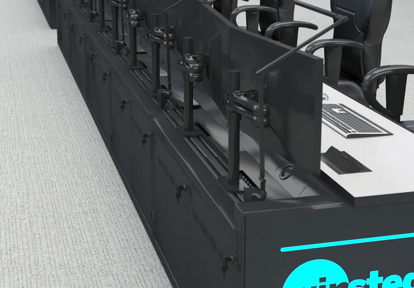 The Sightline console is a line of fixed-height modular consoles and supporting furniture designed and built to meet the critical needs of 24/7 Mission Critical Operations. Sightline offers a modern, configurable design for unobstructed visibility and all the features needed to enhance operational efficiency. Available in closed-base to store technology or open-base for a more open-air feeling. Sightline’s modular design is infinitely configurable using three different base sizes and a variety of convex and concave corners.
