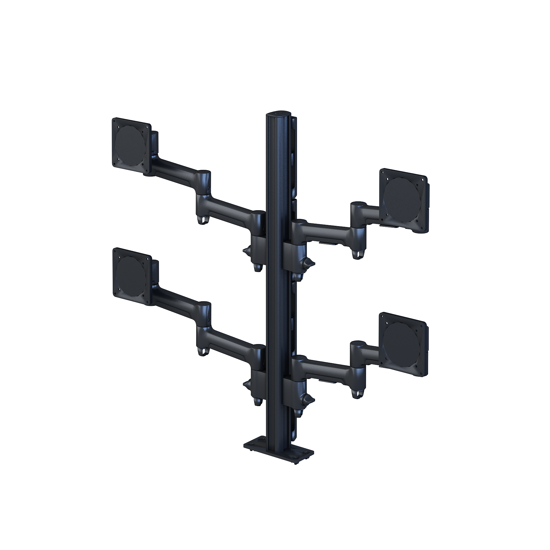- Mix and match components to support varied monitor sizes, configurations, and weights on a single post.
